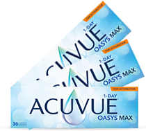 Acuvue Oasys MAX 1-day for Astigmatism er en avanceret 1-dagslinse, der både korrigerer almindelig dioptri og bygningsfejl. Acuvue Oasys MAX 1-day for Astigmatism har et OptiBlue lysfilter, der skaber en unik synsskarphed både dag og nat via filtrering af det blå-violette lys, som digitale skærme og moderne LED-lys udsender. Linsen giver fremragende komfort og et knivskarpt syn hele dagen. Acuvue Oasys MAX 1-day for Astigmatism er ligesom den sfæriske model udstyret med det nyudviklede MAX Comfort, som indeslutter og frisætter fugten i linserne - og i øvrigt yder fuld UV-beskyttelse. Læs nedenfor hvordan.
